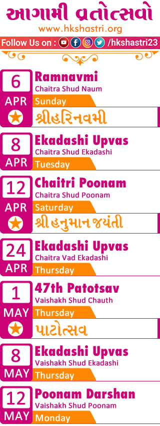 ShakotsavX - Events of 2019 Share Our Programs Share on FacebookShare on Facebook Share on XShare on X Pin itShare on Pinterest Share on LinkedInShare on LinkedIn Post navigationPreviousPrevious post:Guruji’s Diksha Tithi – 1 Jan 2019NextNext post:3rd Sunday Vachnamrut Katha 20 Jan 2019Related PostsShakotsav at Sughad Mandir 12 Jan 2025January 12, 2025Shakotsav at Odhav Prajapati Samaj 5 Jan 2025January 5, 2025Shakotsav 31 Dec 2023December 31, 2023Behno No Shakotsav – 25 Jan 2023January 25, 2023